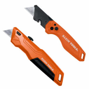 El juego de dos piezas de navaja multiusos deslizable y navaja multiusos plegable automática de Klein Tools está diseñado para ofrecer durabilidad, cortes sencillos y transporte compacto.