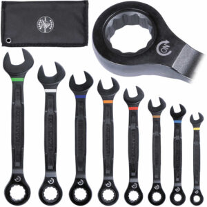 El juego de llaves SAE de 8 piezas viene con llaves combinadas de trinquete de 5/16, 3/8, 7/16, 1/2, 9/16, 5/8, 11/16 y 3/4 de pulgada.
