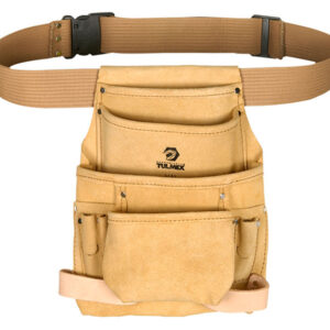 Un portaherramientas de alta calidad con un bolsillo extragrande y cortado en V para todo uso, 2 laterales y 2 frontales, con gancho para navaja.