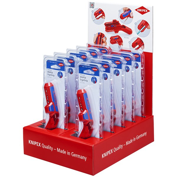 Equipado con 10 ErgoStrip® en blister. Expositor realizado en cartonaje de alta calidad. Tamaño pequeño, mínimo espacio requerido en el punto de venta. Dimensiones (ancho x alto x fondo): 225 x 360 x 260 mm.