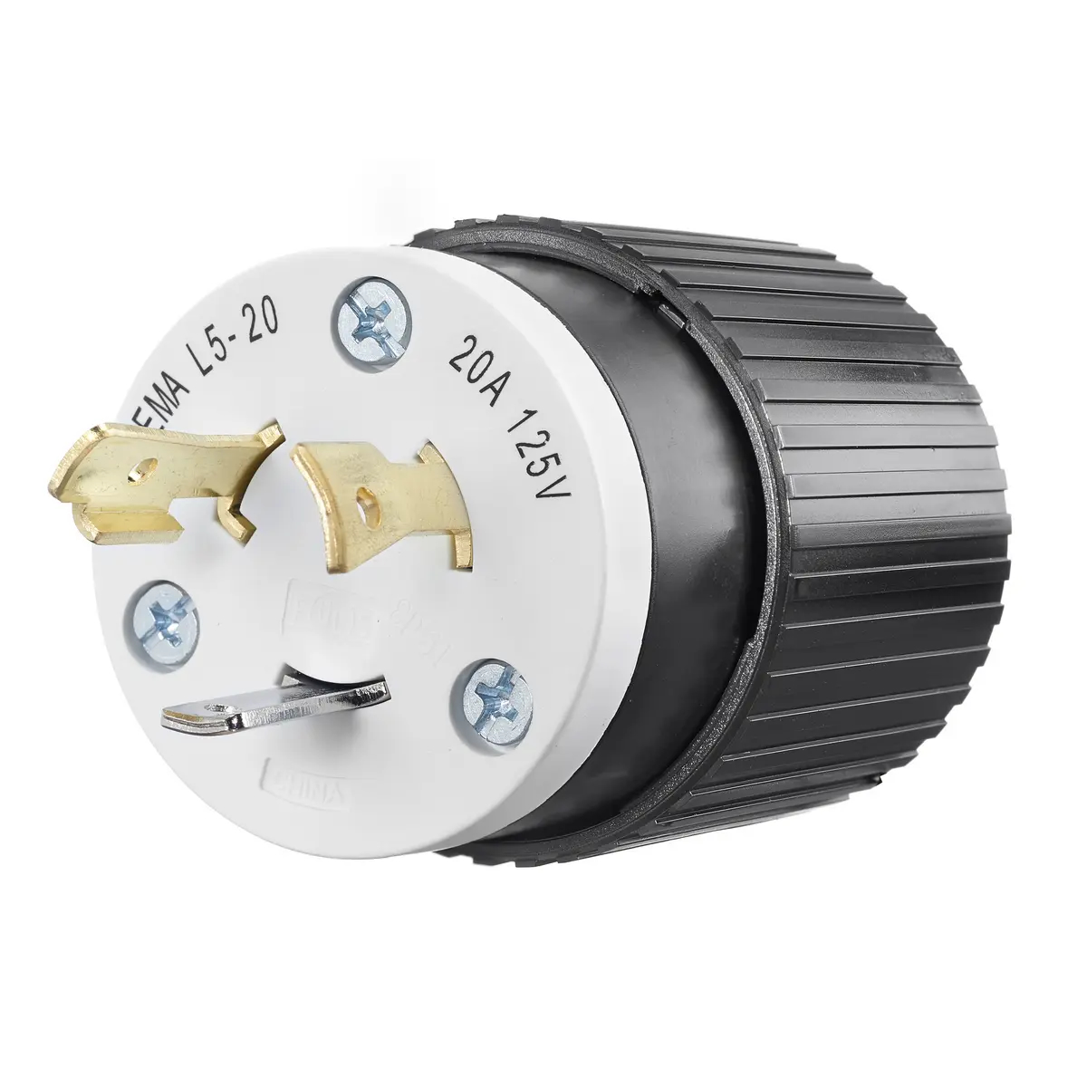 Dispositivos de Bloqueo, Industrial, Enchufe Macho de Nylon, 20A 125V, Conexión a Tierra de 2 Polos y 3 Cables, L5-20P, Terminal de Tornillo, Blanco y Negro
