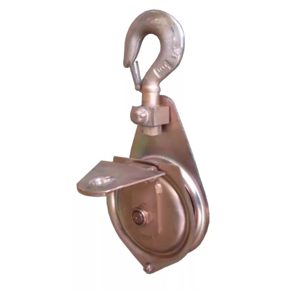 Polea de acero galvanizado montada sobre rodamientos de bolas.